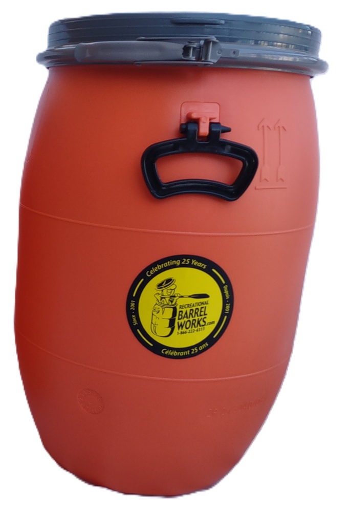 The 60 Litre / 16 US Gallon RBW Barrel is our largest barrel. At 62cm tall x 39 cm wide (24 3/8 x 15.5 inches), this waterproof barrel provides plenty of dry storage capacity. Weighs 4.175 kg (9.2 pounds) empty.