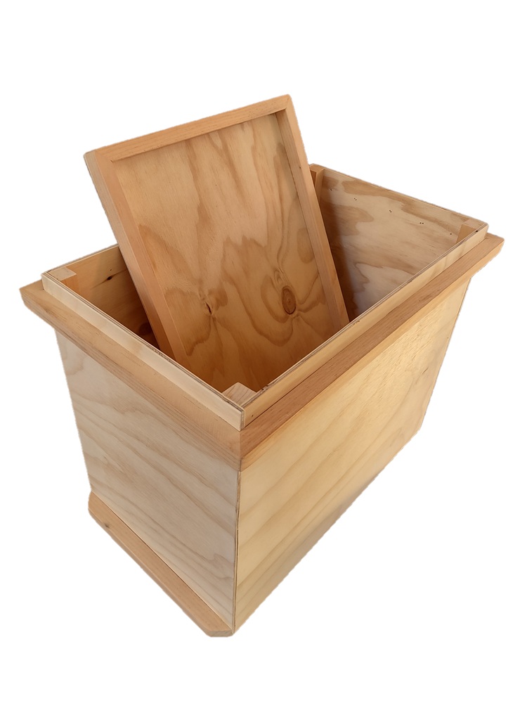 VARNISHED: made with 3/16in and 1/2in plywood, pine supports and brass nails and screws. Lid gasket installed.